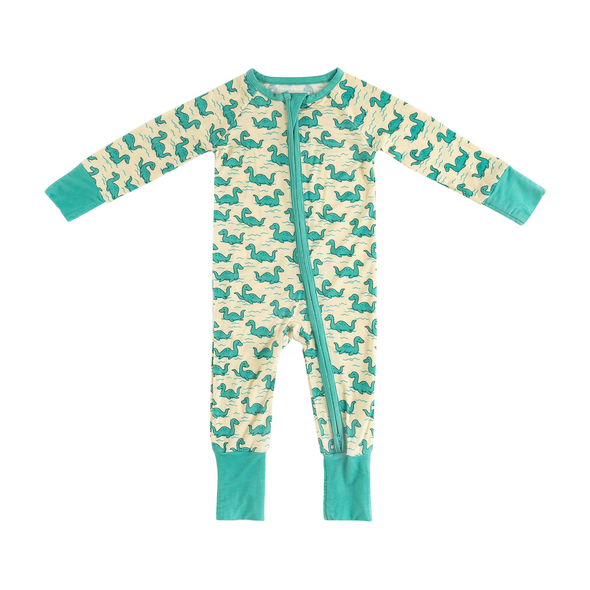 Wrap your little one in comfort with this adorable zippered sleeper featuring a playful Nessie print, inspired by the mythical Loch Ness Monster, swimming across a soft cream background. Made from ultra-gentle, breathable bamboo fabric, this sleeper is perfect for babies with eczema or sensitive skin, helping to soothe irritation and regulate temperature for a calm, restful sleep.
